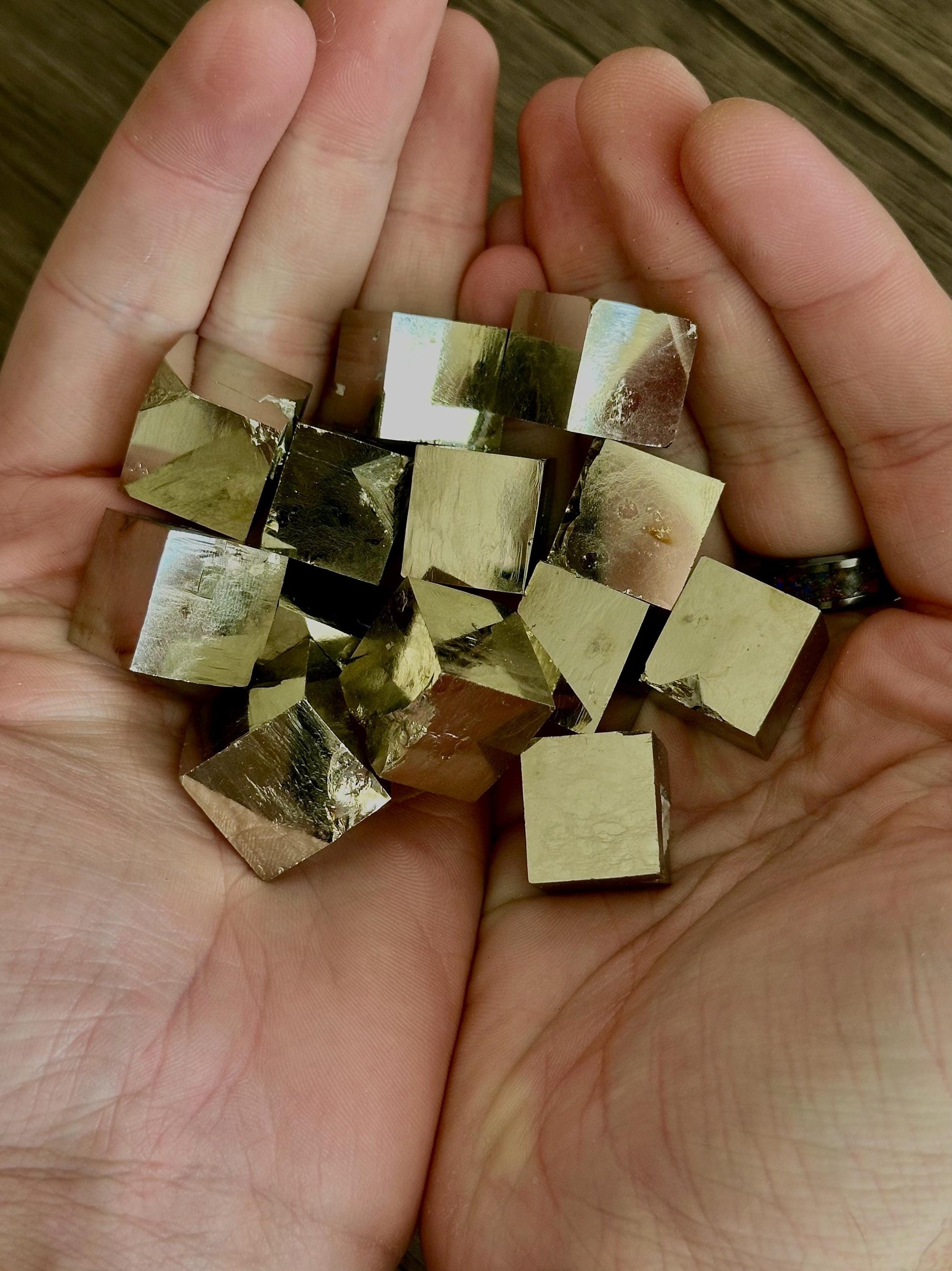 Traditionally associated with protection and prosperity, pyrite cubes are often used to anchor energy and intention.